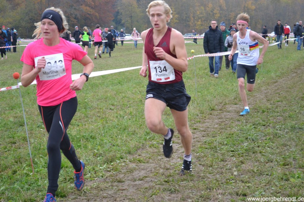 Auf dem etwas "ungeliebten" Wiesenrundkurs, der unter anderem einige 180° Kehren enthält, kam das Ergebnis sehr überraschend. Flo lief ein taktisch sehr gutes Rennen. Zu Beginn des Rennens hielt er sich in der Führungsgruppe etwas hinten auf, konnte der Tempoverschärfung folgen und dann selbst ca. 600 m vor dem Ziel die Initiative ergreifen und ging an die Spitze des Feldes. Am Ende sicherte sich Flo den zweiten Platz hinter dem Deutschen Cross Meister Dominik Müller der 2 Sekunden vor Flo die Ziellinie überquerte. Beide haben damit das Tickert für die EM sicher. Die restlichen drei Tickets werden dann am 24. November in Darmstadt vergeben.