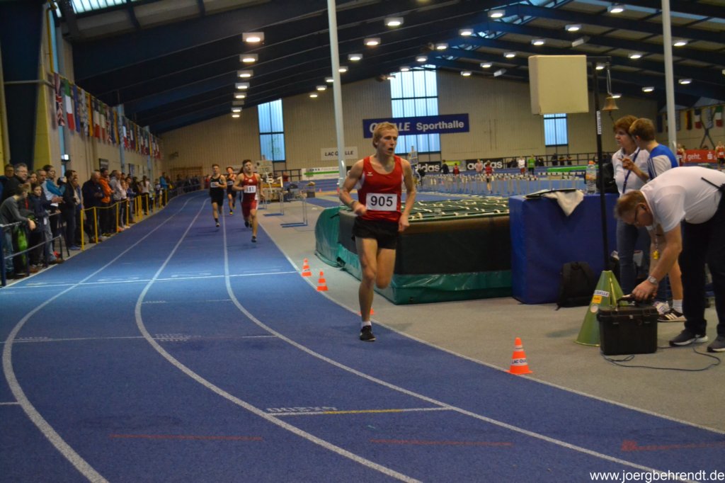 Flo Bremm konnte sich dagegen über den 4. Platz und über eine neuen Bestleistung freuen. Flo ging diesmal eine Altersklasse höher an den Start und war in der Männerklasse unterwegs. In 8:39,12 min war er 11 Sekunden schneller als vor Jahresfrist in der Halle. Die Norm von 9:05 min für die Deutschen Jugendhallenmeisterschaften unterbot er diesmal deutlich.