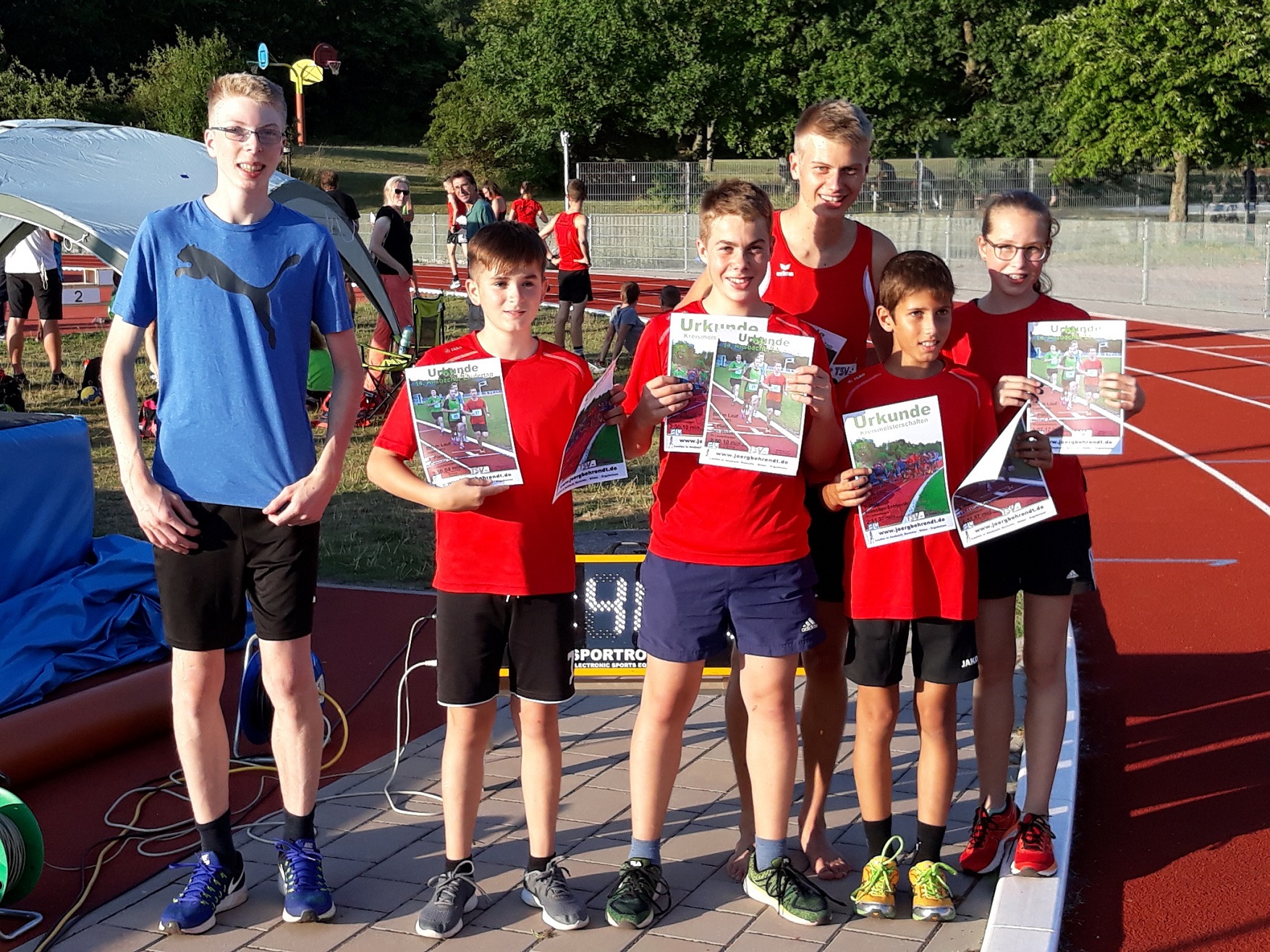 Isabel Ammon, Tom und Connor Staunton sowie Simon Körber feierten ihre Premiere in einer der anspruchsvollsten Disziplinen der Leichtathletik. Die Kreismeisterschaften im Stabhochsprung wurden eigens für die Newcomer ausgerichtet. Isabel (W12) überquerte 1,70m und belegte den dritten Rang. Tom und Conner schafften 1,60m bzw. 1,50m. Simon Körber konnte 2,40m überspringen.