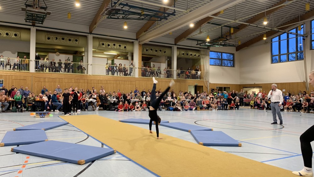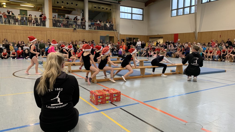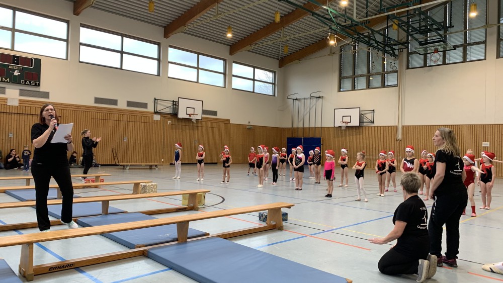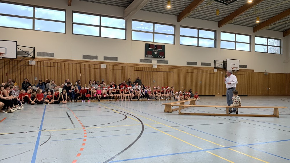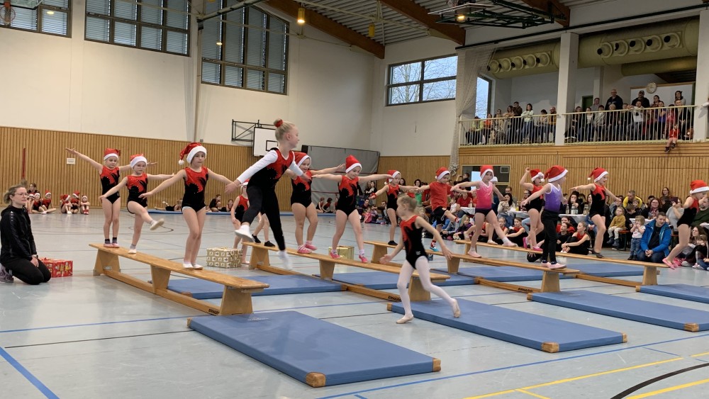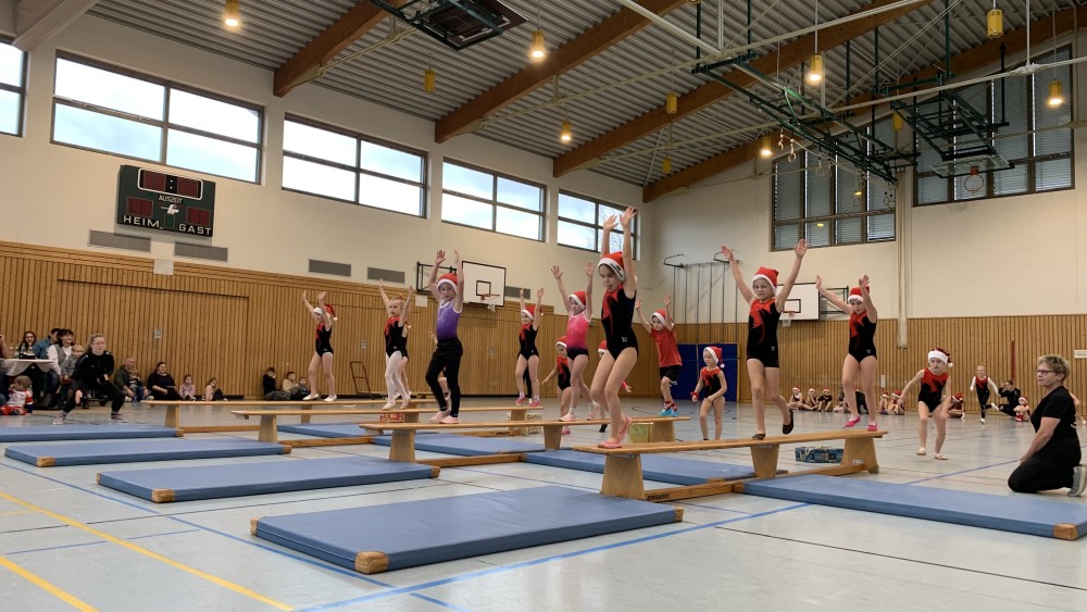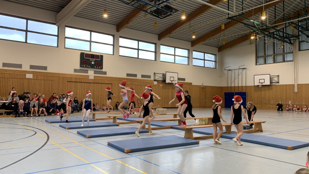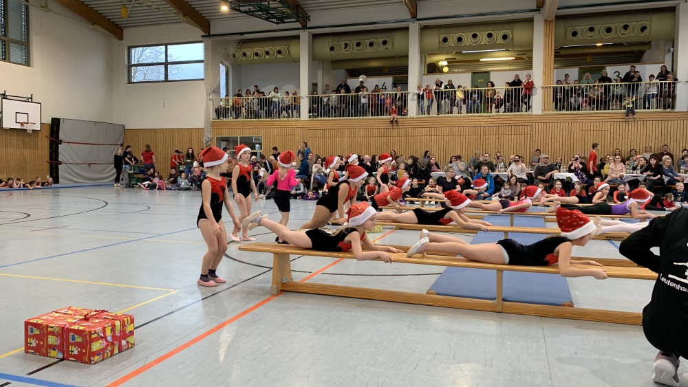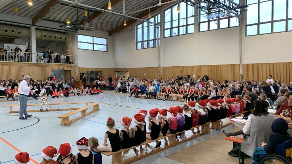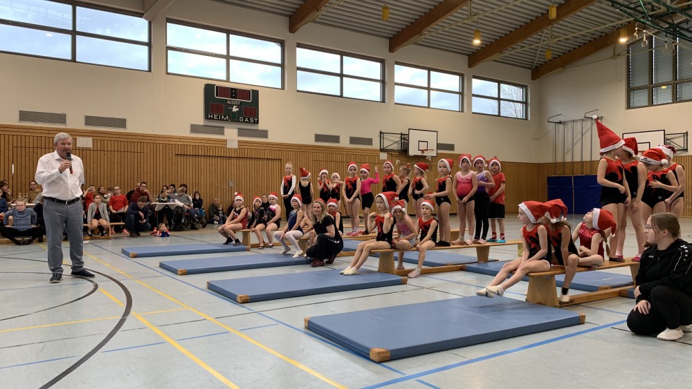 Traditionell am 2. Advent fand das „Weihnachtsturnen“ in der neuen Turnhalle statt. Der 1. Vorsitzende Rüdiger Schuler konnte ein großes Publikum begrüßen, die Halle war bis auf den letzten Platz gefüllt. Er führte zusammen mit der Abteilungsleiterin der Turnabteilung, Dagmar Kötzel, durch das Programm.