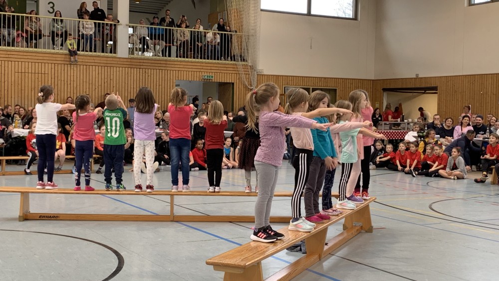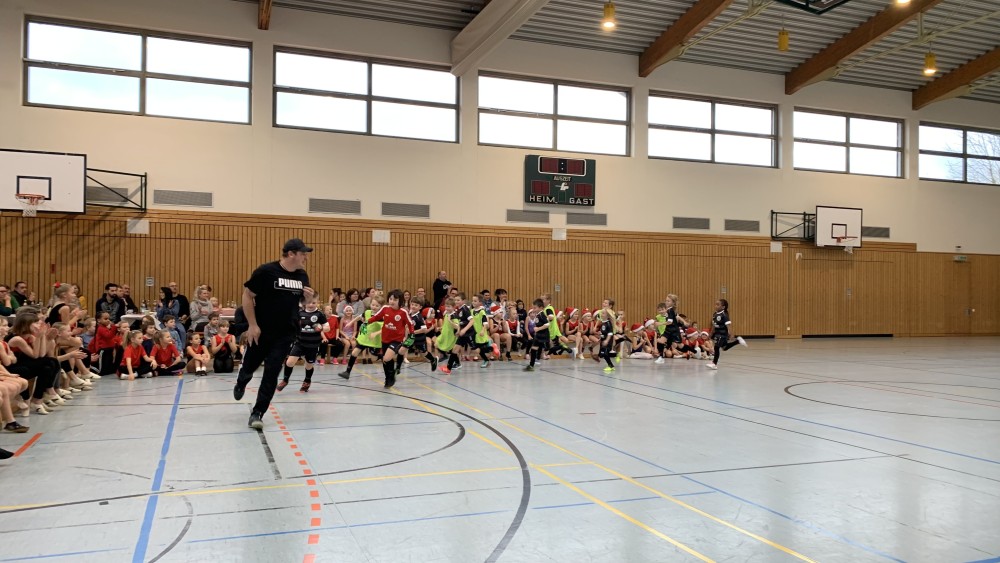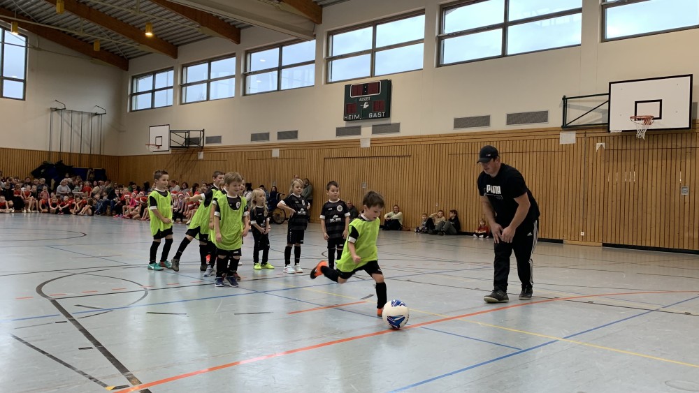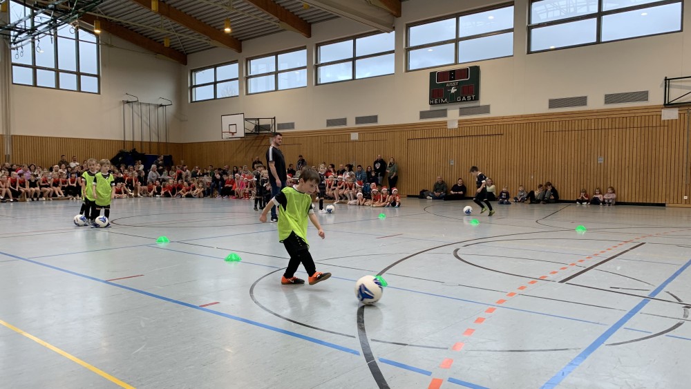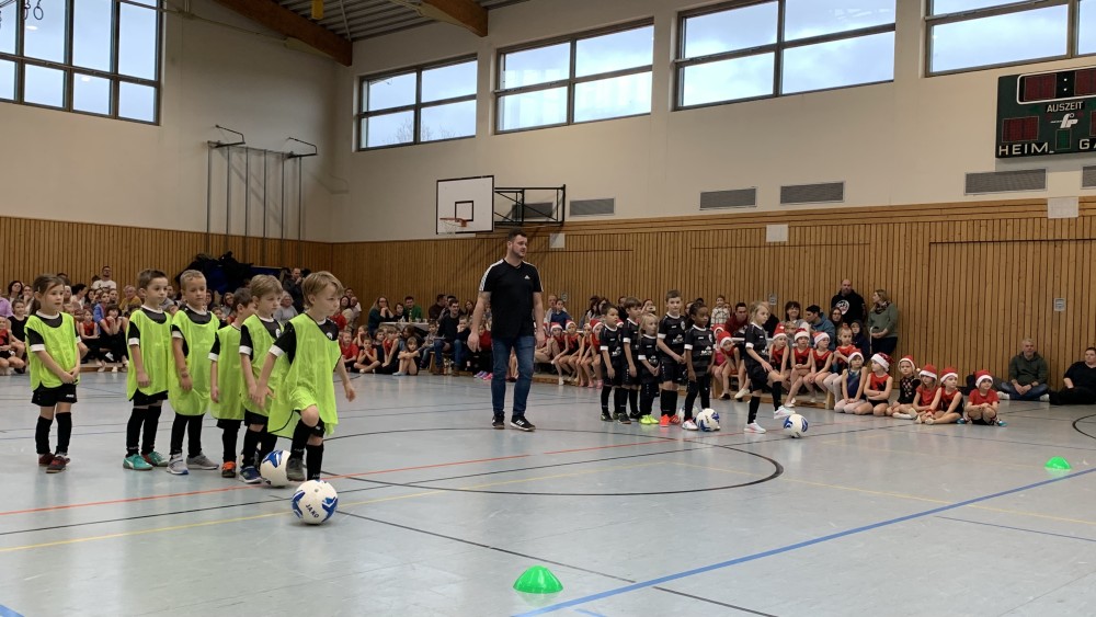 Angefangen mit den Vorschulkindern, die begeistert einen Bewegungstanz darboten, gefolgt von der F-Jugend der Fußballkinder. Sie zeigten, dass man auch in der Halle Tore schießen kann.