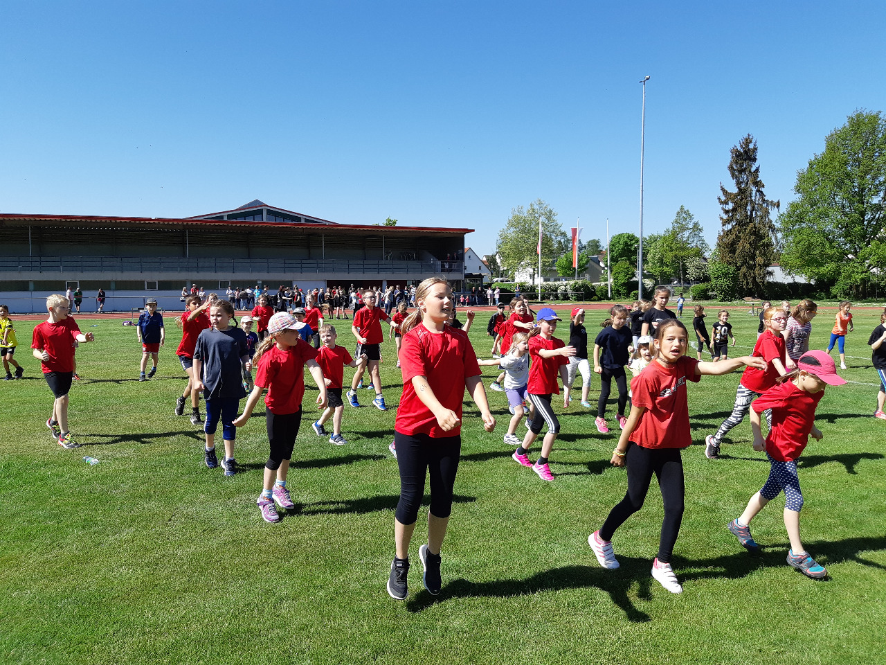 - anschließend gemeinsame Erwärmung und Riegeneinteilung der Kinder im Stadion