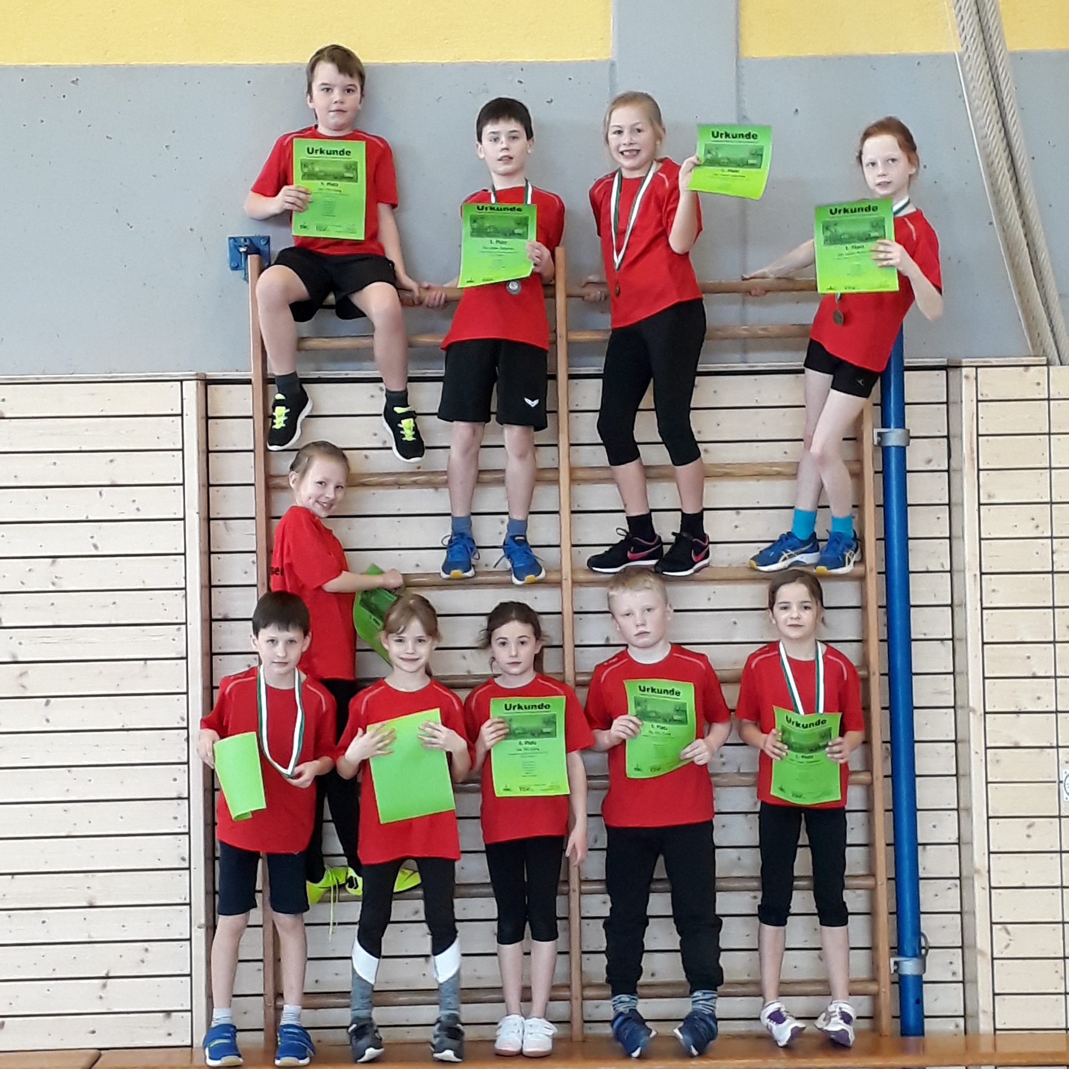 Mit knappen Vorsprung holten sich "Die roten Raketen" mit Nicola Rührschneck, Sarah Thiele, Zoe Wilzin, Ben Vetter und Jan Vetter den Tagessieg unter 9 Mannschaften. "Die TVL Gang" mit Philipp Braun, Max Kraheberger, Nina Johnson, Maya Johnson, Mia Back und Elisa Förster landeten im guten Mittelfeld. Super Jungs und Mädels! Weiter so!