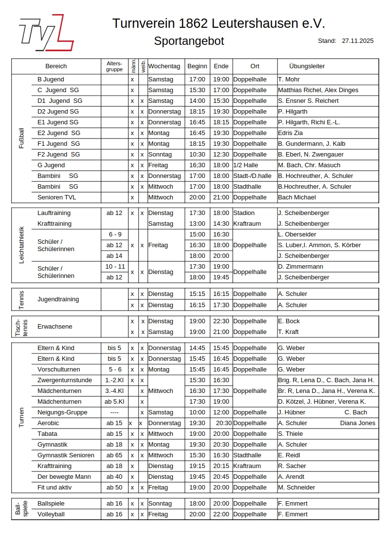 Liebe Mitglieder und Gönner des Turnverein 1862 Leutershausen.